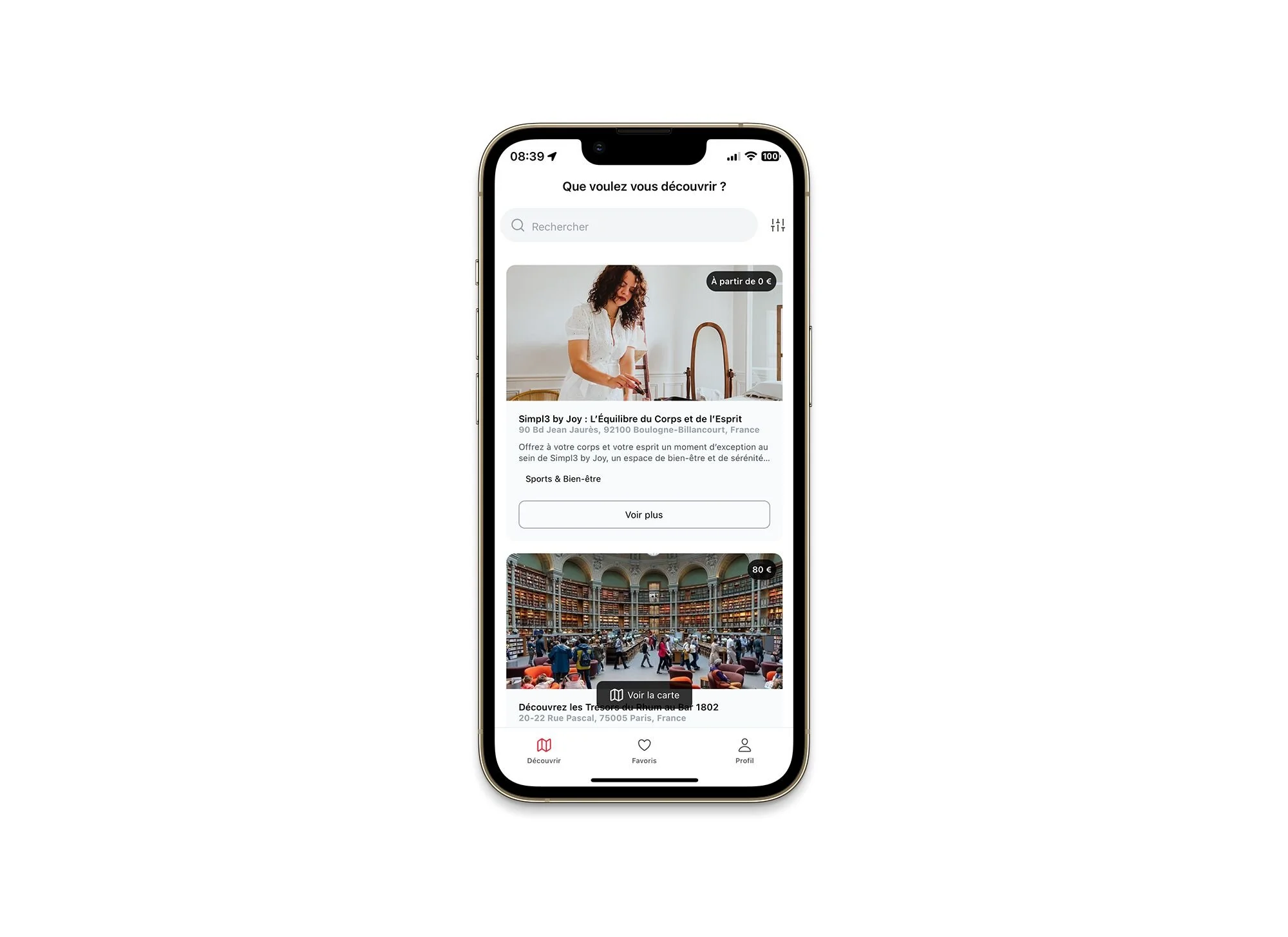 Interface intuitive pour découvrir instantanément ce qui vous correspond. Filtres intelligents, carte interactive, réservations simplifiées.